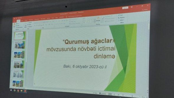 Ekoloqların, icra hakimiyyəti, bələdiyyə, QHT və KİV nümayəndələrinin, həmçinin digər maraqlı tərəflərin iştirakı ilə keçirilən ictimai dinləmədə paytaxtın Yasamal, Nizami, Nərimanov, Qaradağ və Pirallahı rayonları üzrə ümumilikdə 85 ədəd qurumuş və ya qəzalı vəziyyətə düşmüş müxtəlif cinsli ağacın götürülməsi müzakirə edilib.