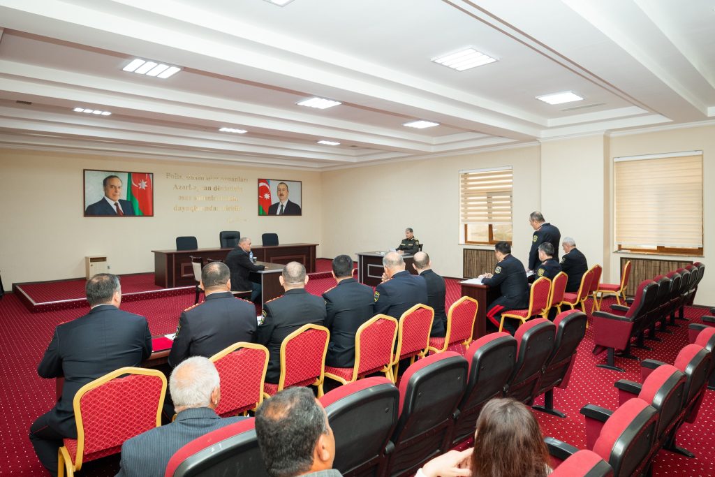 Səfər çərçivəsində general-polkovnik V.Eyvazov bölgə üzrə polis orqanlarında sıravi və kiçik rəis heyətinə xidmətə qəbulla bağlı sıra baxışı keçirib.
