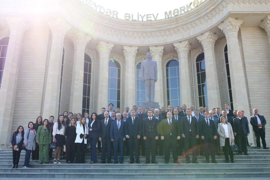 Konfrans iştirakçıları Mərkəzin qarşısındakı Ulu Öndər Heydər Əliyevin abidəsini ziyarət edərək, gül dəstələri düzüblər.
