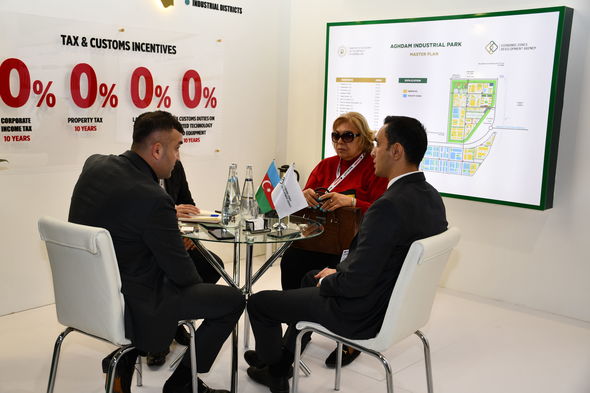 İZİA-dan verilən məlumata görə, maraqla qarşılanan stenddə sərgi iştirakçılarına ölkədə fəaliyyət göstərən sənaye parklarında sahibkarlar üçün mövcud investisiya imkanları, tətbiq olunan vergi və gömrük güzəştləri, Qarabağda yaradılan Ağdam və “Araz Vadisi İqtisadi Zonası” sənaye parklarının baş planları və hər iki sənaye parkında görülmüş işlər barədə məlumatlar verilir.