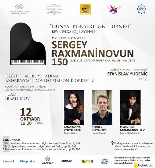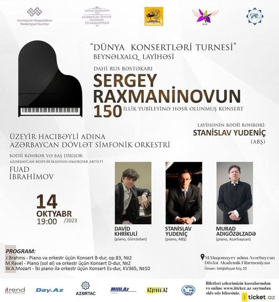 Tanınmış ABŞ musiqiçişi Stanislav Yudeniçin bədii rəhbəri olduğu “Dünya Konsertləri Turnesi” beynəlxalq layihəsi çərçivəsində Bakı şəhərində dünya şöhrətli bəstəkar Sergey Raxmaninovun 150 illik yubileyinə həsr olunmuş silsilə konsertlər keçiriləcək.
