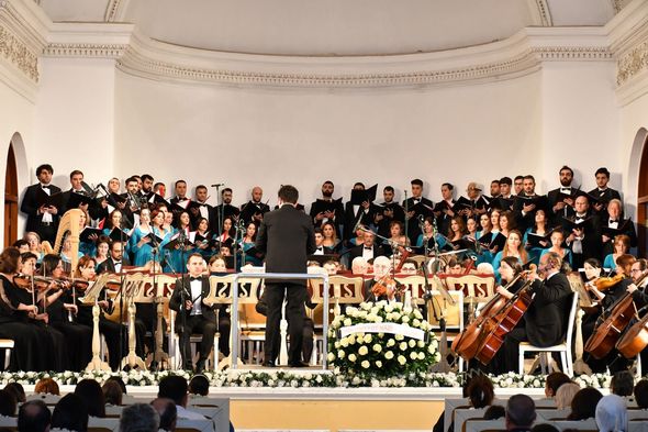 Konsertdə beynəlxalq müsabiqələr laureatı Mustafa Mehmandarovun dirijorluğu ilə Ü.Hacıbəyli adına Azərbaycan Dövlət Simfonik Orkestri (bədii rəhbər və baş dirijor, Əməkdar artist Fuad İbrahimov) və Azərbaycan Dövlət Xor Kapellası (bədii rəhbər və baş dirijor, Xalq artisti Gülbacı İmanova), solistlər – Xalq artisti Azər Zeynalov (tenor), Əməkdar artisti Tural Ağasıyev (tenor) və Rauf Məmmədzadə (bariton) çıxış ediblər.