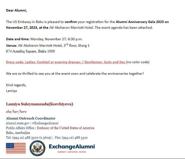ABŞ-nin Azərbaycandakı Səfirliyi ABŞ-də təhsil almış azərbaycanlı məzunlarla görüş keçirəcək.