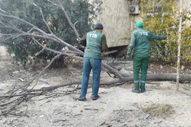“Baki şəhər Yaşıllaşdırma Təsərrüfatı Birliyinin işçiləri tərəfindən sınan ağaclar ərazilərdən götürülüb və operativ şəkildə ərazi təmizlənib. Küləklə əlaqədar Bakı şəhər Yaşıllaşdırma Təsərrüfatı Birliyinin əməkdaşları gücləndirilmiş iş rejimində çalışırlar”.