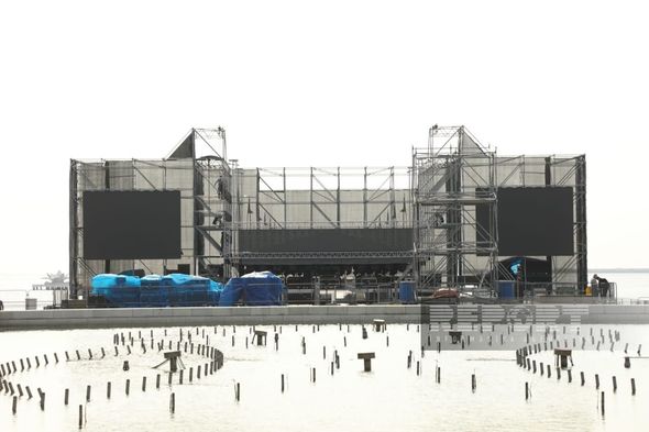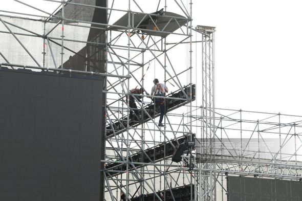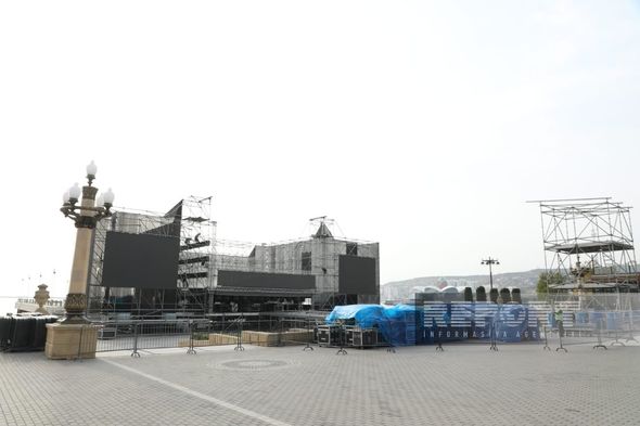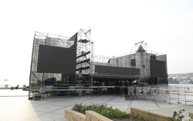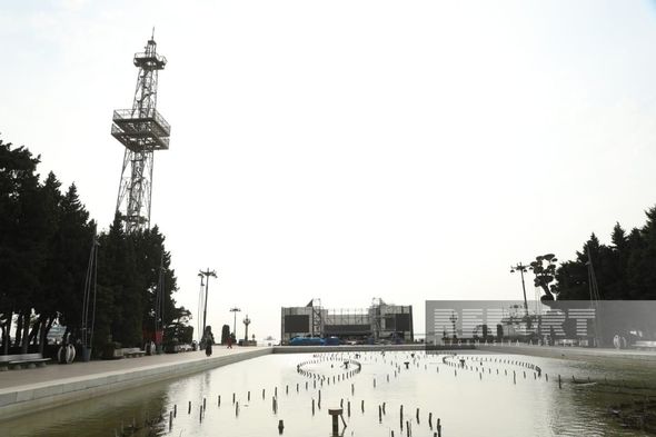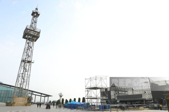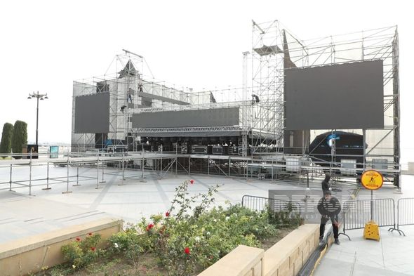 Parkda yerləşən Saat qülləsinin yanında böyük səhnə qurulur.