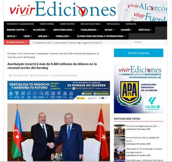 İspaniyanın “EFE” agentliyi, “Vivir ediciones”, “Que pasa”, “Infobae”, “Lado”, “Minuto30” saytları yazır ki, Azərbaycan Qarabağın yenidən qurulmasına 9,4 milyard dollardan çox sərmayə qoyacaq.