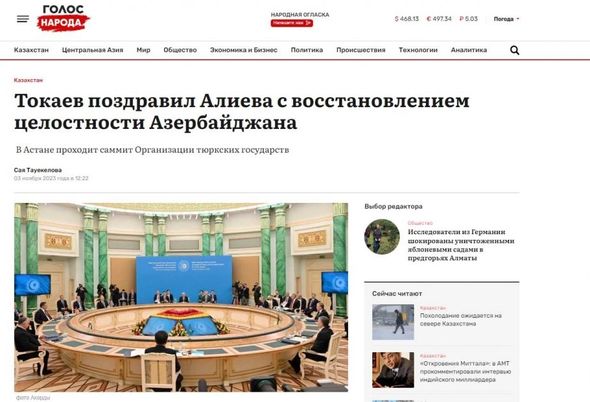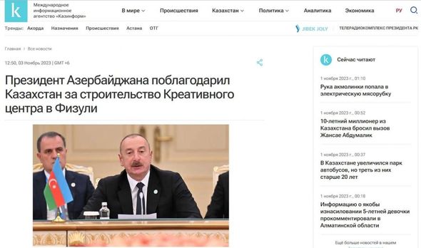 Qazaxıstanın “Kazinform”, “Golos naroda”, “Sputnik”, “Baq”, “Tengri news”, “Kursiv”, “Arbat media”, “Smi24”, “Orda”, “Inbusiness”, “Zakon”, “Baigenews”, “Astana tv” kimi informasiya saytları və xəbər portalları Prezident İlham Əliyevin Azərbaycanın böyük Türk dünyasının bir hissəsi olduğunu, dostluğumuzun, qardaşlığımızın əbədi olacağını söylədiyi və Türk Dövlətləri Təşkilatının beynəlxalq nüfuzunun daha da artacağına əminliyini ifadə etdiyi vurğulanır.