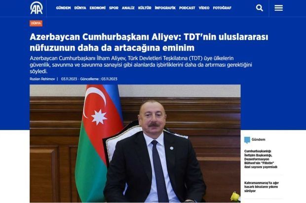 AZƏRTAC xəbər verir ki, Türkiyənin “TRT Haber”, Anadolu Agentliyi, “Yeni Şafak”, “En son haber”, “Haberler”, “Cumhuriyet”, “Son dakika” və digər media qurumları tərəfindən yayımlanan xəbərlərdə Prezident İlham Əliyev tərəfindən Türk Dövlətləri Təşkilatının nüfuzunun bundan sonra da artacağına əminlik ifadə edildiyi, təşkilata üzv ölkələrin təhlükəsizlik, müdafiə və müdafiə sənayesi kimi sahələrdə əməkdaşlığının daha da artırmasının əhəmiyyətinin vurğulandığı bildirilir.