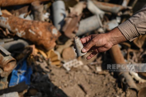 Minalı ərazilərdə aparılan iş prosesi və ANAMA-nın iş mexanizmi barədə məlumat əldə etdikdən sonra Xaliq Zülfüqarovun müşayiəti ilə aşkar olunmuş mina və hərbi sursatların toplanma məntəqəsinə baş çəkirik. Minatəmizləmə əməliyyatı zamanı ərazidəki təhlükəsizlik baxımından daşına bilən hərbi sursatların, raket, mina, eləcə də kustar üsulla hazırlanmış partlayıcıların qalıqları toplanaraq buraya daşınıb və burada kiçik bir təpə yaranıb.