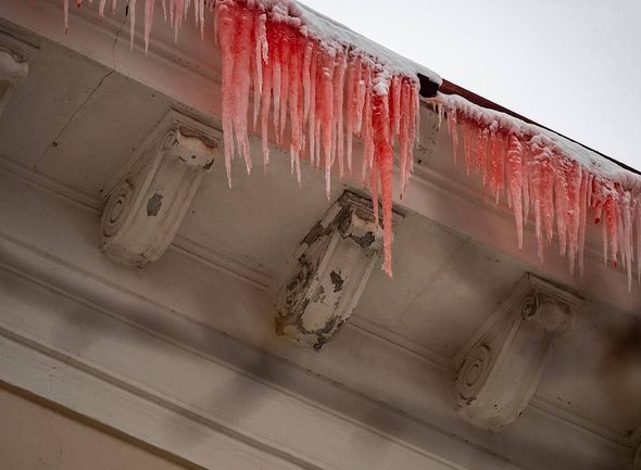 Onların fikrincə, buna səbəb binanın təmiridir – hazırda dam nəmişlik və çürüməyə qarşı xüsusi qatışıqla örtülür. Dama yağan qar əridikdən sonra isə belə bir qorxunc mənzərə ortaya çıxıb.