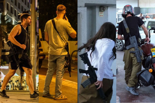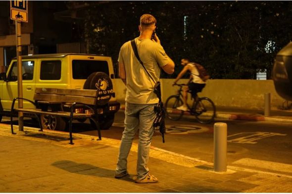 Mülki şəxslərin gündəlik həyatlarında, o cümlədən kafelərdə oturduqları zaman və ya idman edərkən üzərilərində gəzdirdikləri silahlar müharibə ruhunun Təl-Əviv küçələrində də əks olunduğunu ortaya qoyur.
