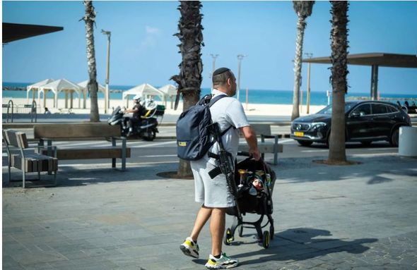 Təl-Əvivdə yaşayan insanlar velosiped sürərkən, çimərlikdə oturarkən, hətta uşaq arabası ilə gəzərkən, idmanla məşğul olarkən əllərində silah gəzdirirlər.