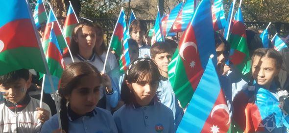 AZƏRTAC-ın bölgə müxbiri xəbər verir ki, 9 Noyabr – Azərbaycan Respublikasının Dövlət Bayrağı Günü ilə əlaqədar Laçında keçirilən yürüşdə Elm və Təhsil Nazirliyinin, Müdafiə Nazirliyinin, Şərqi Zəngəzur iqtisadi rayonuna daxil olan Laçın rayonunda Azərbaycan Prezidentinin xüsusi nümayəndəliyinin rəhbər şəxsləri, hərbçilər, şəhid ailələri, qazilər, 44 günlük Vətən müharibəsində döyüşən müəllimlər, eləcə də şagirdlər, ictimaiyyət nümayəndələri iştirak edirlər.