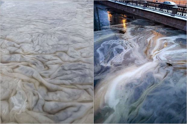 Rusiyanın Sankt-Peterburq şəhərinin sakinləri qəribə mənzərənin şahidi olublar. Belə ki, Yekaterinqofka çayı üzəri müxtəlif naxışları olan sıyıqşəkilli kütlə ilə örtülüb.