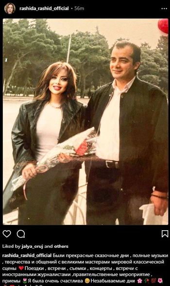Rəşidə paylaşımına “Dünya klassik səhnəsinin böyük ustadları ilə musiqi, yaradıcılıq və ünsiyyətlə dolu gözəl inanılmaz günlər oldu. Səfərlər, görüşlər, çəkilişlər, konsertlər, xarici jurnalistlərlə görüşlər, hökumət tədbirləri, qəbullar. Çox xoşbəxt idim. Unudulmaz günlər” sözlərini yazıb.