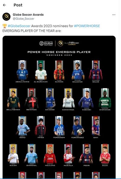 Namizədlər siyahısına İspaniyanın “Real Madrid” klubunun oyunçusu, türkiyəli futbolçu Arda Güler də daxil edilib. Güler “2023-cü ilin yüksələn ulduzu” mükafatına namizəd göstərilib.
