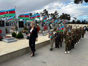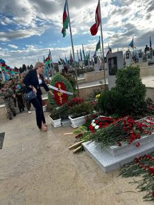 Orada Azərbaycanının Milli Qəhrəmanları general-mayor Polad Həşimovun, Mübariz İbrahimovun və İkinci Qarabaq müharibəsi zamanı şəhid olmuş digər vətən oğullarının məzarını ziyarət ediblər.
