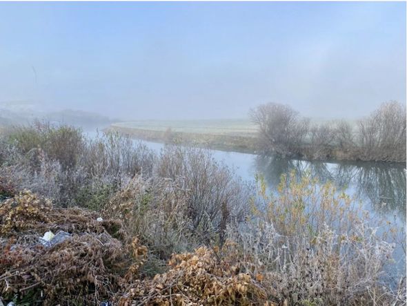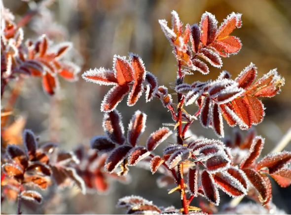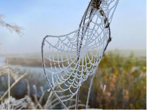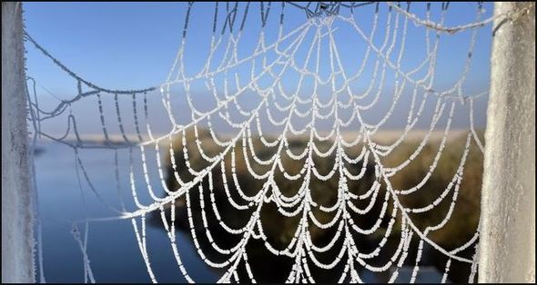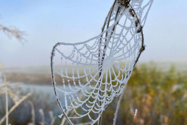 Soyuq hava, şaxta və duman səbəbindən ətrafda demək olar ki, hər yer buz bağlayıb. Hətta hörümçək toru belə donub.