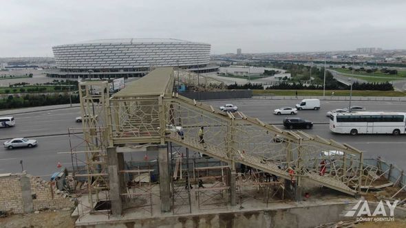 Layihəyə uyğun olaraq keçidin aşırım hissəsinin quraşdırılması həyata keçirilib, hazırda pilləkən hissələrinin montaj işləri aparılır.