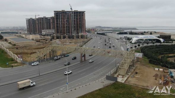 Vətəndaşların avtomobil yolunu rahat və təhlükəsiz şəkildə keçməsini təmin etmək məqsədilə Ziya Bünyadov prospektinin Xəlil Rza Ulutürk küçəsi ilə kəsişməsində yeni yerüstü piyada keçidinin inşası davam edir.