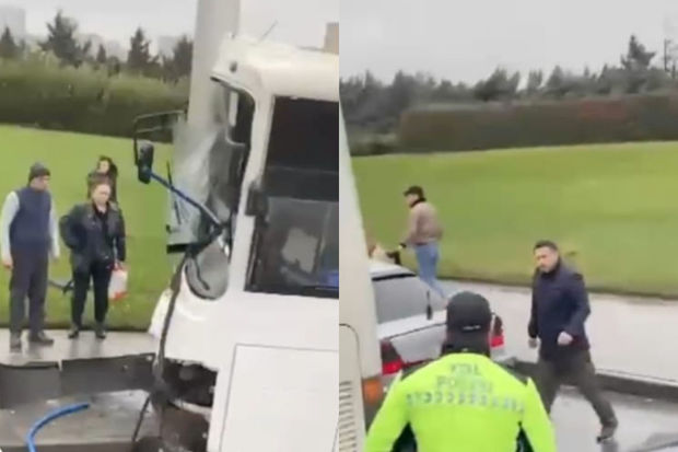 Bakıda sərnişin avtobusu işıq dirəyinə çırpılıb.