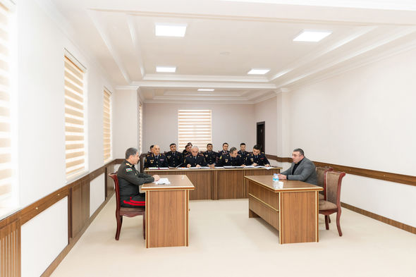 Səfər çərçivəsində general-polkovnik V.Eyvazov bölgə üzrə polis orqanlarında sıravi və kiçik rəis heyətinə xidmətə qəbulla bağlı sıra baxışı keçirib.
