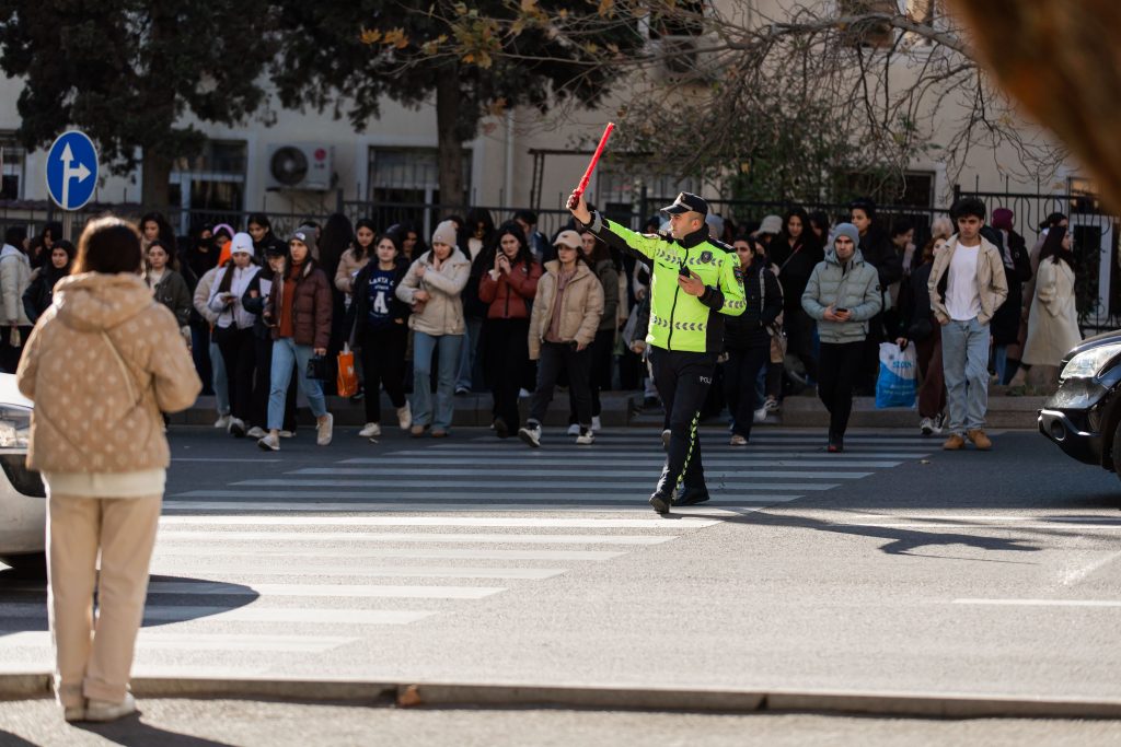 Polis əməkdaşları avtomobil yollarında sürücü və piyadaların təhlükəsizliyinin təmin olunması üçün xidmətlərini davam etdirirlər.
