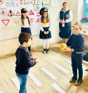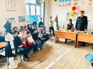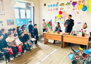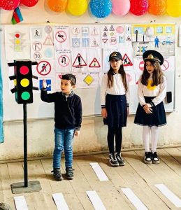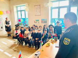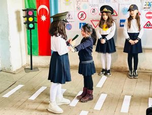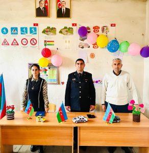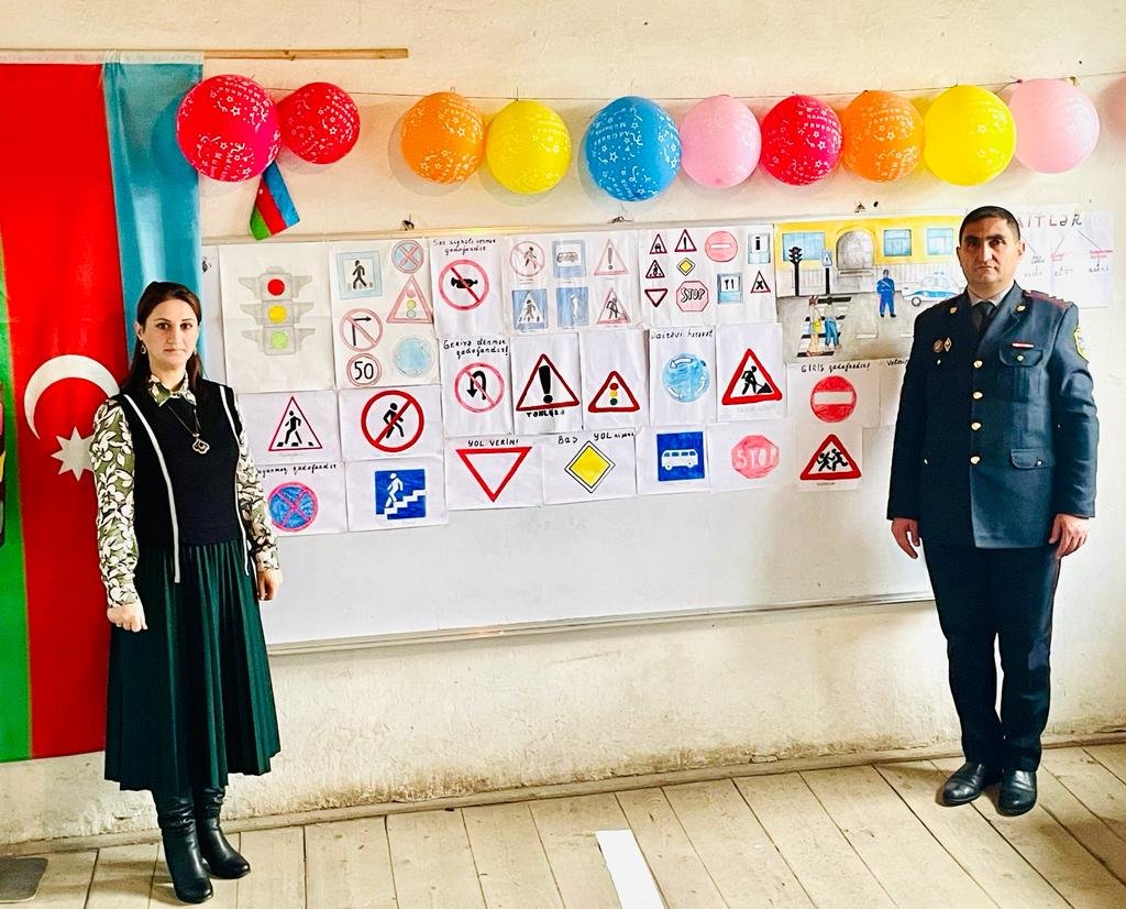 Şəki Dövlət Yol Polis Bölməsinin təbliğat və təşviqat üzrə inspektoru, məktəblilərin sevimlisi,polis baş leytenantı Tural Niftalıyev əyani vasitələrdən istifadə edərək şagirdlərə “Piyadanın vəzifələri”ni öyrədib. Sonra, şagirdlər yol hərəkəti qaydalarına aid şeirlər,mahnılar səsləndirib səhnəciklər nümayiş etdirməklə öz bilik və bacarıqlarını DYP- nin zabitinə göstəriblər.
