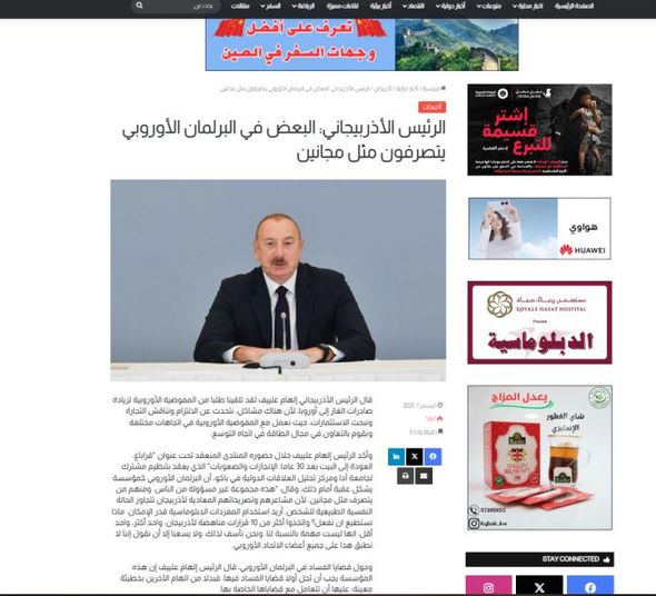 AZƏRTAC xəbər verir ki, ərəb ölkələrinin media orqanları dövlətimizin başçısının fikirlərinə geniş verib.