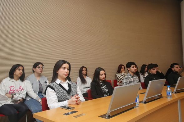 Silsilə tədbirlər çərçivəsində ADA Universitetində tarix elmləri doktoru, professor Həsən Həsənovla görüş keçirilib. 100-dən çox gəncin iştirakı ilə keçirilən tədbirdə ümummilli lider Heydər Əliyevin həyata keçirdiyi müdrik və uzaqgörən siyasətindən söz açılaraq, şanlı qələbəmizin məhz ulu öndər Heydər Əliyevin nəsihətləri və Prezident İlham Əliyevin diqqət və qayğısı ilə yetişmiş gənclərin əsas rol oynadığını qeyd edilib.