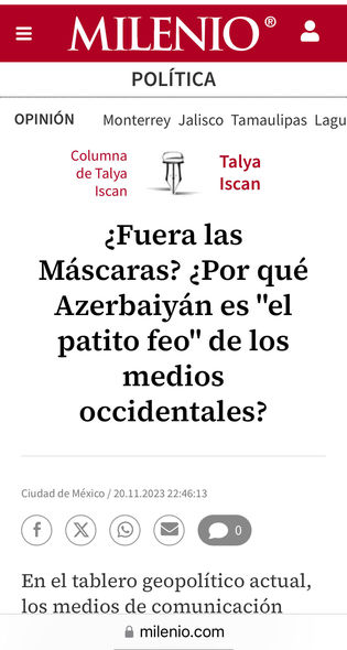 Meksikanın tanınmış “Milenio” qəzetində ölkənin ən nüfuzlu ali təhsil ocaqlarından biri olan Meksika Milli Muxtar Universitetinin professoru, siyasi şərhçi Talya İşcanın müəllifi olduğu məqalə dərc edilib.