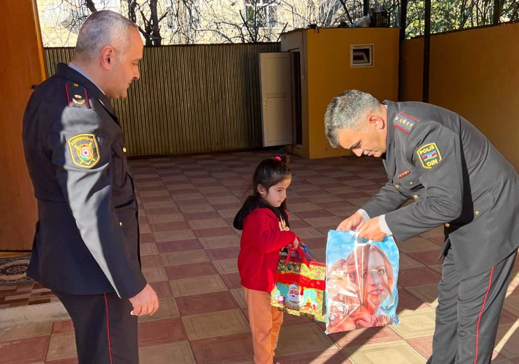 Masallı Rayon Polis Şöbəsinin əməkdaşları Dünya Azərbaycanlılarının Həmrəyliyi Günü və Yeni il münasibətilə Vətən müharibəsi və Antiterror tədbirləri zamanı şəhid olmuş hərbi qulluqçuların ailələrinə baş çəkiblər. Onlarla həmsöhbət olub, qayğıları ilə maraqlanıblar. Gətirdikləri sovqatları, həmçinin şəhid övladları üçün alınan bayram hədiyyələrini onlara təqdim ediblər. Ziyarət zamanı Vətən müharibəsində qazanılan tarixi qələbədən, şəhidlərimizin keçdiyi döyüş yolundan danışılıb, göstərdikləri şücaət və qəhrəmanlıqlardan bəhs olunub. Onların müqəddəs amal uğrunda canlarından keçdikləri, əziz xatirələrinin daim qəlbimizdə yaşayacağı bir daha vurğulanıb.