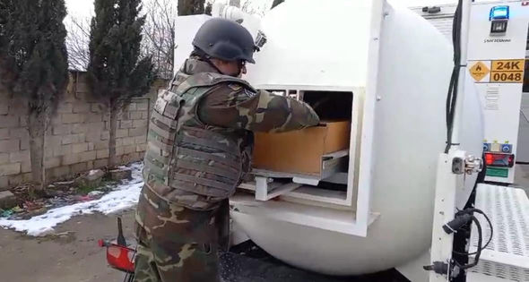 Sursat XRXX-nin çevik qrupunun mütəxəssisləri tərəfindən zərərsizləşdirilməsi üçün ərazidən götürülərək kənarlaşdırılıb.