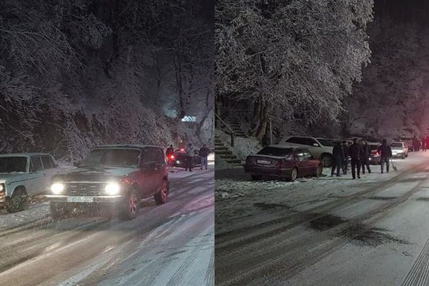 APA-nın məlumatına görə, yolun buz bağlaması avtomobillərin hərəkətinə mane olub.