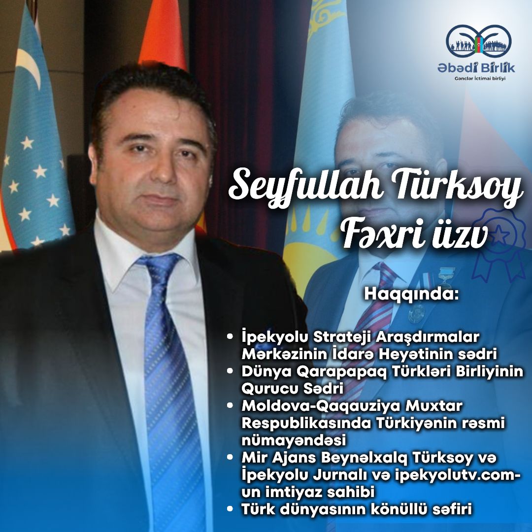 İpekyolu Strateji Araşdırmalar Mərkəzinin İdarə Heyətinin sədri Seyfullah Türksoy “Əbədi Birlik” Gənclər İctimai Birliyinin Fəxri üzvü olub.