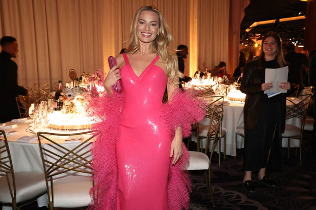 Məlumata görə, Robbi mərasimə “Giorgio Armani Prive”dən sifariş etdiyi çəhrayı paltarda gəlib. O bu cür görünüşü ilə hər kəsi heyran edib.
