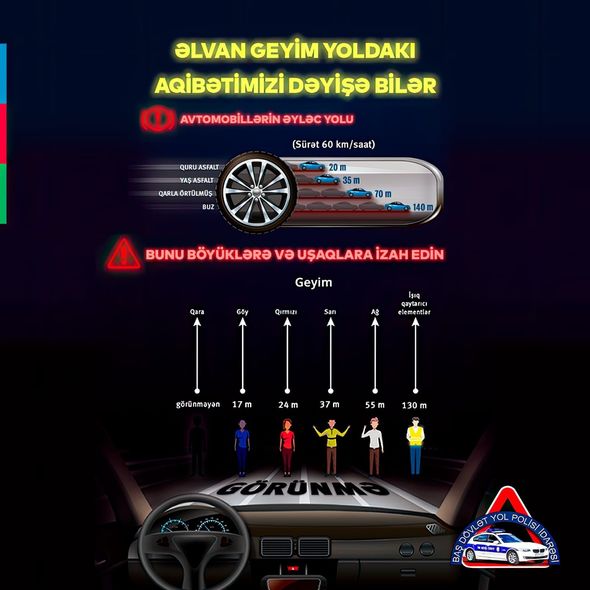 – Piyadadan söhbət gedirsə, ilk məsləhətim odur ki, maksimum rəngli geyinmək lazımdır. Hətta məktəblərdə uşaqlarla təlim keçəndə da deyirəm ki, valideynlərinizə deyin, sizə qara paltar almasınlar. Gödəkçələriniz qırmızı, yaşıl, sarı və ya digər parlaq rənglərdə olsun ki, sürücü sizi görə bilsin. Bizdə insanlar qara üst geyimlərini çox sevirlər. Bu da problem yaradır. Çünki qaranlıq vaxtı qara geyimdə piyadanı görmək mümkün deyil.
