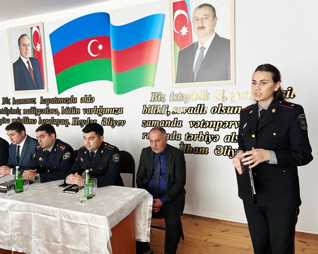 Tədbirdə çıxış edən RPŞ-nin rəisinin xidmət üzrə müavini, polis polkovnik-leytenantı Emin Kərimov Daxili İşlər Nazirliyinin Polis Akademiyası barədə şagirdlərə ətraflı məlumat verərək, təhsil müəssisəsinin yaranma tarixi, inkişafı, ölkəmizdə hüquq elminin inkişafına verdiyi töhfələr, daxili işlər orqanlarının ali təhsilli hüquqşünaslarla təmin olunmasındakı fəaliyyətindən danışıb.