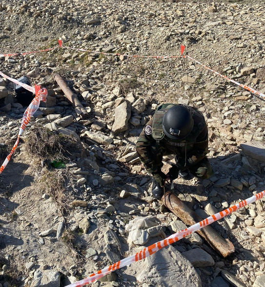 Hüquq-mühafizə orqanı əməkdaşları ilə birgə ərazidə müvafiq təhlükəsizlik tədbirləri görüldükdən sonra hadisə yerinə baxış zamanı aşkar edilmiş sursatın bir ədəd 122 mm-lik “Qrad” mərmisinin qalıqları olduğu müəyyən edilib.