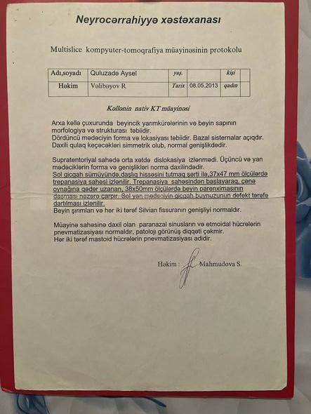 “Ayselin beş yaşı olanda qulağından çirk gəlməyə başladı, buna görə də əməliyyat olundu. Daha sonra vəziyyəti get-gedə pisləşməyə başladı. 2021-ci ilə qədər dörd dəfə beyin əməliyyatı keçirdi. Qulağının arxasında sümük olmadığı üçün ora implant taxılmışdı. Amma implant həm qırılıb, həm də şişdiyi üçün o yenidən əməliyyat edildi. Əməliyyat zamanı qırılmış implant çıxarılıb, yerinə yeni implant qoyuldu. Biz yenidən əməliyyat üçün Türkiyəyə yollandıq. Həkimlər Ayselin müalicə olunub daha sonra əməliyyat edilməli olduğunu dedilər”.