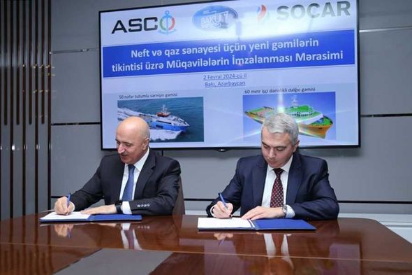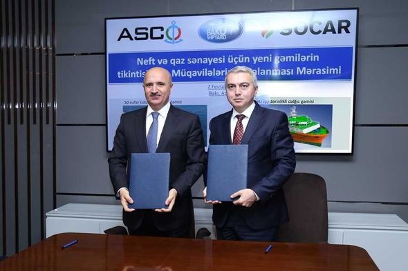 “Azərbaycan Xəzər Dəniz Gəmiçiliyi” QSC (ASCO) və “Bakı Gəmiqayırma Zavodu” MMC (BGZ) arasında dənizdə neft-qaz hasilatına xidmət edəcək yeni gəmilərin tikintisinə dair müqavilə imzalanıb.