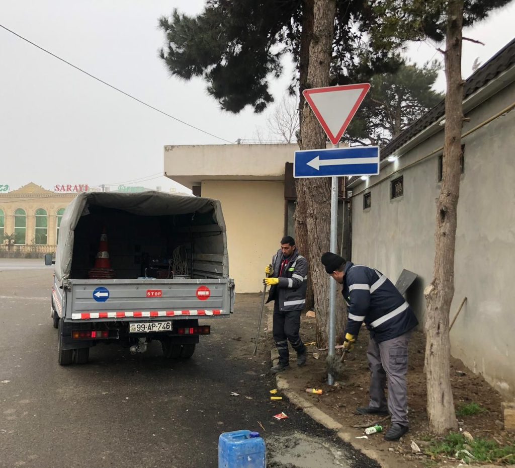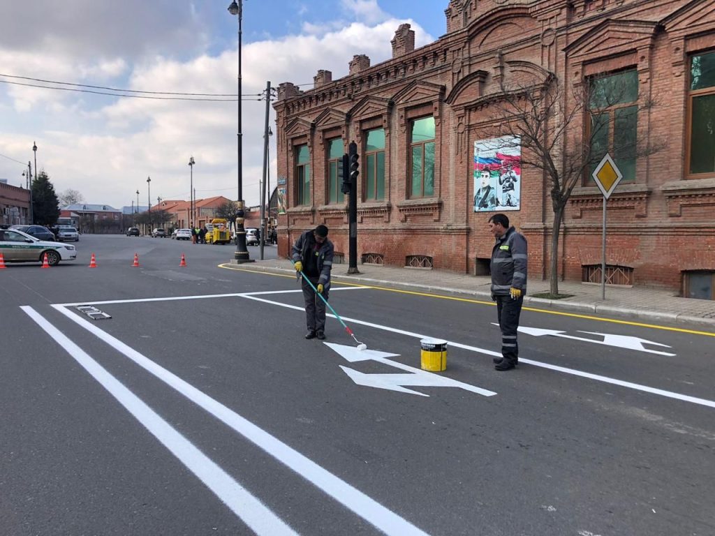 Gəncə şəhərində yeni yol nişanları quraşdırılıb.