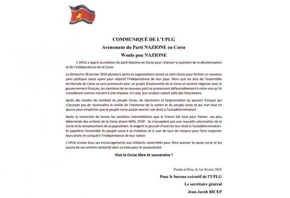 Qvadelupanın Azadlığı naminə Xalq Birliyi Partiyası (UPLG) Korsikanın dekolonizasiyası və müstəqilliyi məsələsini yenidən gündəmə gətirmək üçün Korsikada “Nazione” Partiyasının yaradılmasını dəstəkləyib.
