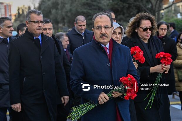 Tədbirin əvvəlində Xocalı soyqırımı qurbanlarının xatirəsi bir dəqiqəlik sükutla yad olduqdan sonra, abidə önündə qərənfil gül dəstələri düzülüb.