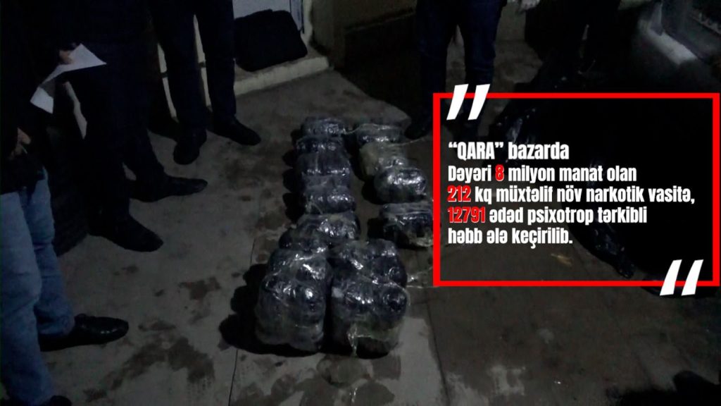 “Qara” bazarda dəyəri 8 milyon manat olan 212 kiloqram narkotik vasitə və 12 min 791 ədəd psixotrop tərkibli həbi ələ keçirilib.