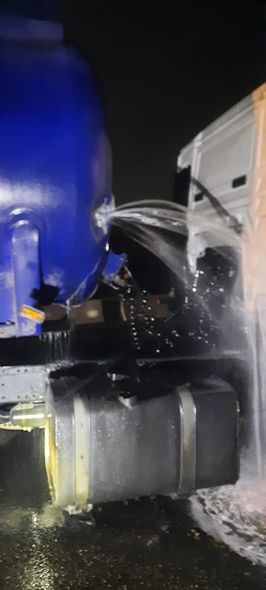 Hadisə yerində əməliyyat şəraitinin qiymətləndirilməsi zamanı yanacaqdoldurma məntəqəsinin ərazisində qoşqusunda tutumu 37 ton dizel yanacağı olan MAN markalı yanacaqdaşıyan avtomobil ilə “KamAZ” markalı yük avtomobilinin toqquşması nəticəsində qəza hadisəsinin baş verdiyi və yanacaqdaşıyan yük avtomobilinin çəninin zədələnərək dizel yanacağının ətrafa dağıldığı, məntəqə üçün ciddi təhlükənin yarandığı müəyyən olunub.