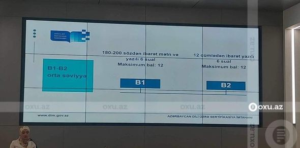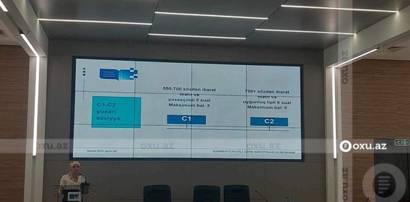 Sözügedən imtahan nəticələri üç səviyyə: A1-A2 – başlanğıc səviyyə, B1-B2 – orta səviyyə, C1-C2 – yuxarı səviyyə üzrə qiymətləndiriləcək.