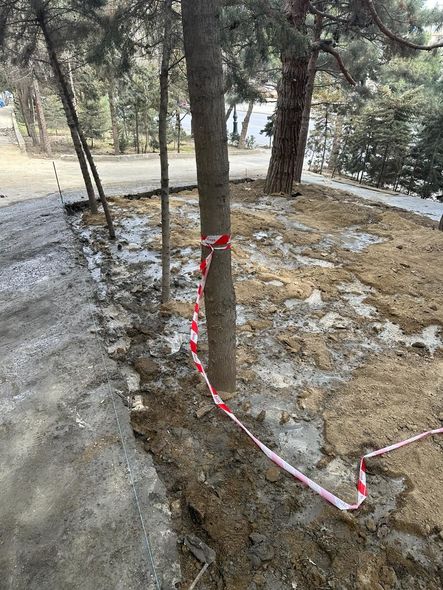 Bundan başqa tikintini aparanlar 500 kvadratmetrlik yaşıllıq ərazisini məhv edərək həmin yerə beton töküblər, 200 kvadratmetrə yaxın qazon örtüyünü isə qazıb yerindən götürərək özləri üçün parklanma yeri düzəldiblər. Həmçinin digər çoxillik şam ağaclarının dibinə sementlə qarışdırılmış suyu axıdıblar ki, ağaclar süni şəkildə qurusunlar.