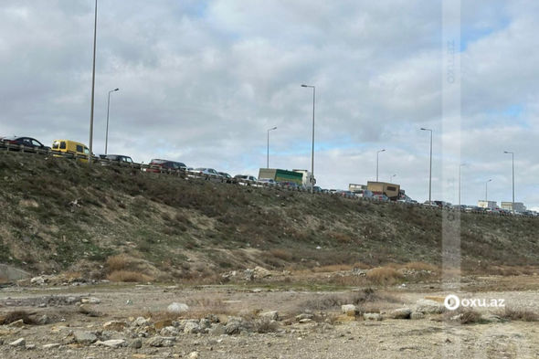 Bu barədə Oxu.Az-a oxucular məlumat veriblər. Bildirilib ki, bir saata yaxındır ki, yol bağlıdır. Tıxac səbəbindən sürücülər maşından enib, yolun açılacağını gözləyirlər.