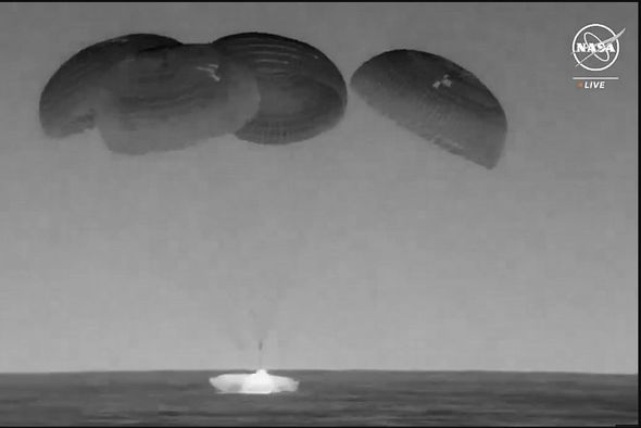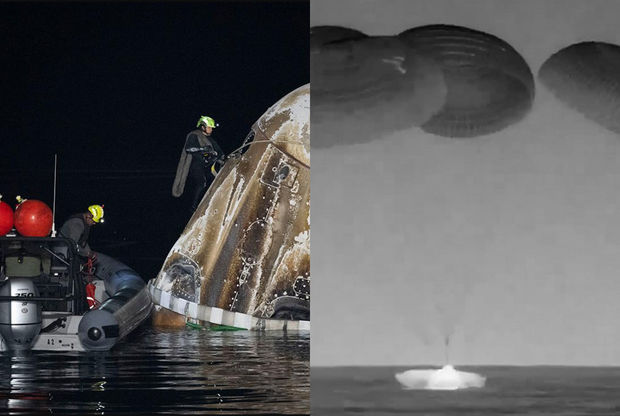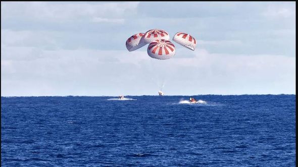 Gəmi yerli vaxtla saat 05:50-də Florida sahillərində Atlantik okeanına enib. Bir neçə dəqiqə əvvəl isə “Crew Dragon” atmosferin sıx təbəqələrinə daxil olub, bundan sonra təxminən 5,5 km yüksəklikdə gəminin əsas paraşütləri açılıb. Kosmik gəmi və ekipajının BKS-dən çıxdıqdan sonra Yerə qayıtması üçün bir gündən az vaxt lazım olub.